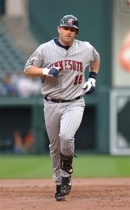 Adam Loewen (L 6-6, 5.30 ERA) tossed six innings, giving up 3 runs (4 earned) on 8 hits, striking out eight and walking one, but the Twins managed to find holes in his otherwise decent pitching performance. After Joe's two-run shot in the first, he led off the third with a base hit before being forced out at second on a Michael Cuddyer (1 for 4) grounder. Cuddy moved to third on a Justin Morneau (2 for 5) single, and was driven in by a Torii Hunter (1 for 5, RBI) base hit. After Rondell White (0 for 3) reached due to a fielding error by second baseman Brian Roberts, Phil Nevin (1 for 3, 3 RBI) scored him on a sacrifice fly, giving the Twins a 4-0 lead.